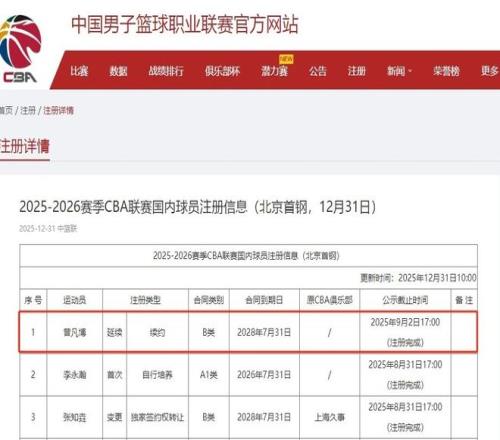 北京男篮在和广厦男篮的比赛中败北,遭遇了新赛季的第一场失利。不过需要注意的是,目前的北京男篮还不是完整体,缺少了曾凡博和陈盈骏,以及还有奥莫特离队的外援空缺。就在刚刚,CBA官方更新了球员注册名单,显示曾凡博已经完成了注册,他和北京男篮签署了三年B类合同。接下来1月1日和广东男篮的元旦大战,将会是曾凡博新赛季的首秀。曾凡博的能力就不用多说了,绝对是国内最好的锋线球员之一,上个赛季场均能够得到14.7分4.7个篮板1.9次助攻的数据。曾凡博的复出,肯定能够在攻防两端以及护框方面给北京男篮带来不小帮助。