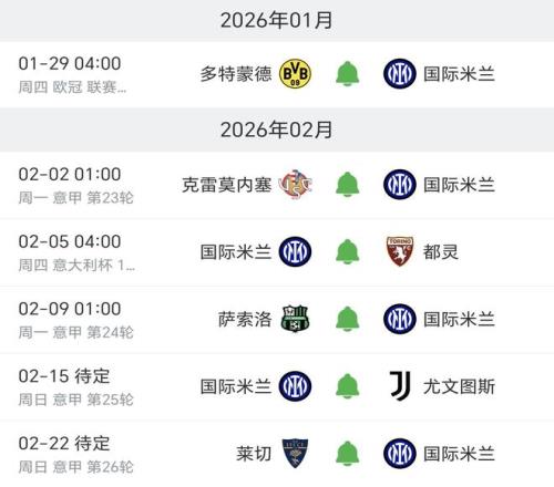现在,国米一月份只剩1场与多特蒙德的欧冠比赛,对方目前还有直接跻身前八出线的机会,所以应该不会放水,国米想要在欧洲著名魔鬼主场威斯特法伦球场拿分难度相当大,当然即便取胜也很难直接挤进前四,这也就意味着国米将在二月份多踢两场欧冠淘汰赛附加赛。加上一场意大利杯与都灵的1/4决赛的比赛,国米整个月要踢7场比赛,而且欧冠附加赛还是在国家德比之后进行,这对国米双线备战都会有些影响,不过尤文大概率也要踢附加赛,这对双方来说是公平的。